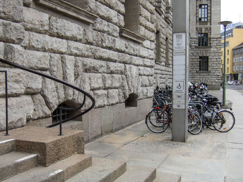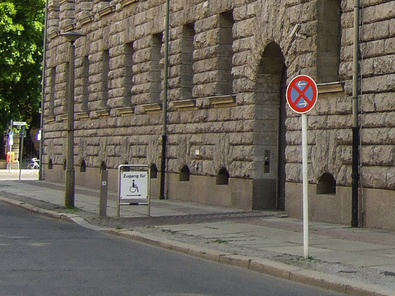 “Bauliche Anlagen, die öffentlich zugänglich sind, müssen so errichtet und instand gehalten werden, dass sie von Menschen mit Behinderungen, alten Menschen und Personen mit Kleinkindern über den Hauptzugang barrierefrei erreicht und ohne fremde Hilfe zweckentsprechend genutzt werden können.” | § 51,2 der Bauordnung für Berlin (BauO Berlin) vom 19.09.2005 Fassung vom 29.06.2011.