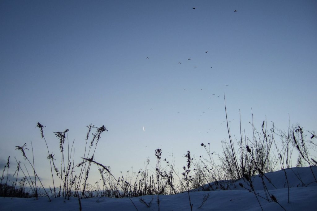 Vögel auf ihrem Weg in die kalte Winternacht | 02.01.2001