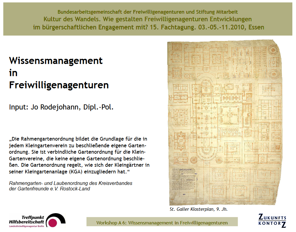 Bundesarbeitsgemeinschaft der Freiwilligenagenturen und Stiftung Mitarbeit: Kultur des Wandels. Wie gestalten Freiwilligenagenturen Entwicklungen im bürgerschaftlichen Engagement mit? 15. Fachtagung. 03.–05.-11.2010, Essen
